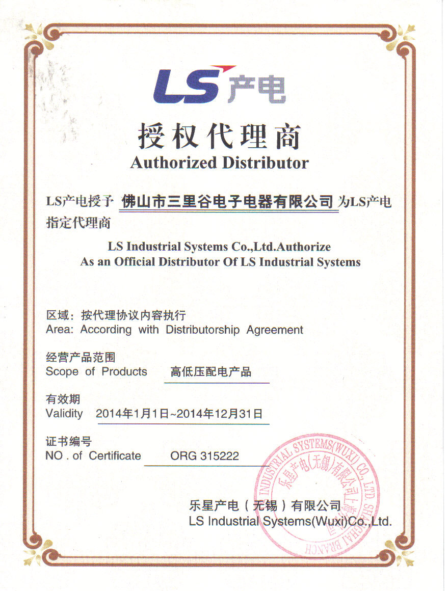 佛山市三里谷電子電器有限公司成立于2004年,是韓國(guó)LS產(chǎn)電華南地區(qū)核心代理商;同時(shí)專業(yè)代理、經(jīng)銷日本富士、臺(tái)灣士林、法國(guó)海格電氣、上?当壤麅x表、貴州長(zhǎng)征、深圳泰永科技、西安森源等國(guó)內(nèi)外知名品牌高、低壓元件及工業(yè)電氣的公司。以專業(yè)的技術(shù)支持,優(yōu)質(zhì)的售后服務(wù),承接各項(xiàng)配電及自動(dòng)化設(shè)備改造工程。